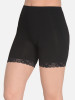 Black solid mid-rise hot pants,lace detail has an elasticated waistband, and a double-layered gusset-MU205