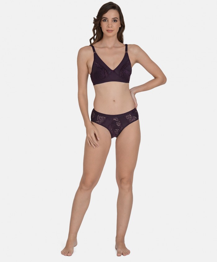 Self Design Non Pdded,Non wired, adjustable Straps and Back closer Lacy Lingerie Set-MS-440